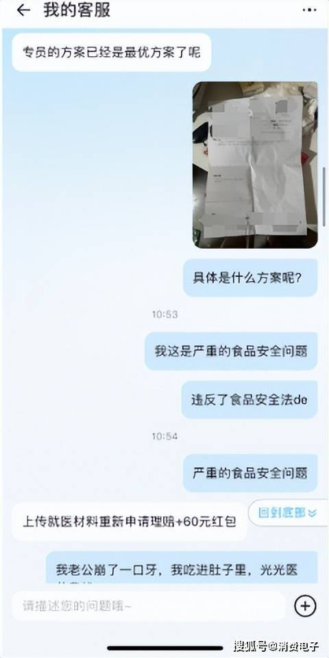 当麦女士追问保险赔偿细节时,平台客服表示“上传医疗材料重新申请理赔+60元红包”。