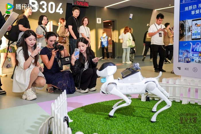 “移动爱家”以温暖日常呈现未来之家,观众通过“全国亲情网”的家庭连结、“智慧云盒”的语音智控,并与机器狗“灵犀”畅快互动,感受智能陪伴的温度;“动感地带”化身青春潮流基站,以演唱会、体育赛事等权益回应了年轻群体对文化认同与社群体验的渴望;“全球通”如同品质生活沙龙,通过“逐马计划”等尊享服务,诠释品质生活体验。而“移动爱购”与三大回馈计划,则以趣味设计,迅速点燃参与热情,让智慧消费变得生动可玩。
