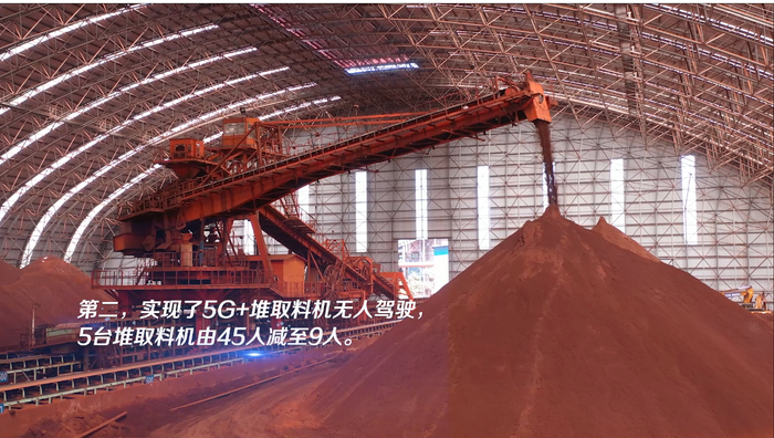 为践行绿色发展理念,加快产业转型升级。2019年9月,马钢集团决定在局部区域投资1616万元,先期实施料场智能化改造。安徽联通紧盯马钢集团港务原料总厂亟需迫切解决的痛点、难点问题,以“中国联通5G创新中心—马钢联合实验室”为研发平台,与马钢集团共同组织技术人员精心谋划、研究制定解决方案。智慧料厂项目选取料厂外供区A矿槽、混匀区1#B棚、水运区三个场景为5G应用试验点,通过布置5G应用,实现5G网络与有线网络冗余互备、5G+堆取料机无人驾驶、5G+3D数字料场、5G+智能视频巡航、5G+AI安全行为监管、5G+AR智能巡检6大功能,为大型移动设备无人操作、智慧运维奠定基础。