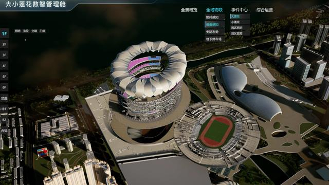 “这是‘大小莲花’智慧大脑的核心部分,真正实现了一个屏掌控全局。”负责“大小莲花”场馆运营的阿里体育数字化服务中心总经理周堡英介绍说,数智管理舱运用“数字孪生”技术,将“大小莲花”高精度核心模型区与奥体园区程序化模型区进行融合,形成与真实世界地理坐标系完全一致的奥体中心“数字孪生基座”。