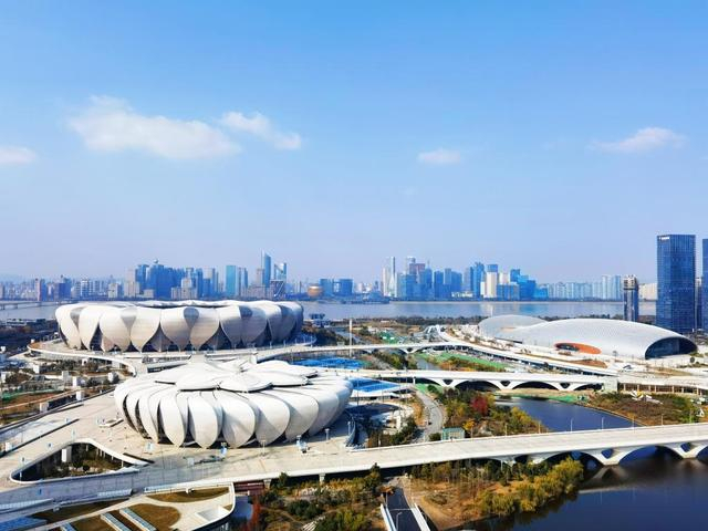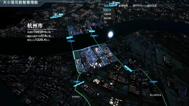 因外形酷似两朵盛开的莲花,杭州奥体中心主体育场和网球中心决赛馆常被杭州市民昵称为“大小莲花”。走进奥体中心运营大厅,映入眼帘的是一块超级大屏,名为“大小莲花”数智管理舱,屏幕上呈现的是整个奥体园区的虚拟模型。