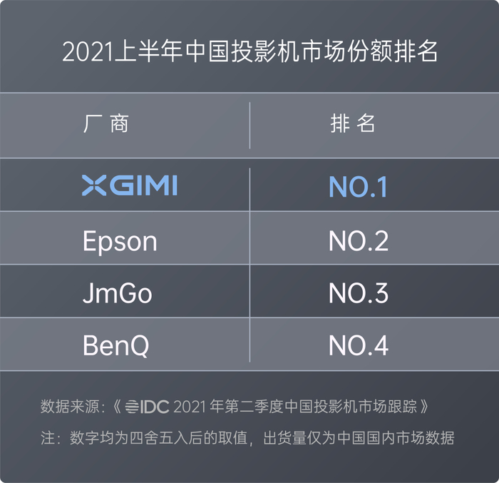 事实上,2018 年、2019 年及2020年连续三年,极米科技出货量持续保持中国投影设备市场第一,市场份额分别达 13.2%、14.6%和 18.1%。2021年上半年,极米科技以20%的市场份额继续保持其“投影一哥”的行业地位。