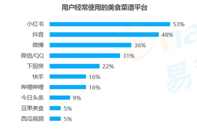 在这些平台中,主打“有用性”的小红书具有更强的学习心智,菜谱教程类内容渗透率最高,成为年轻人经常使用的美食菜谱内容平台。