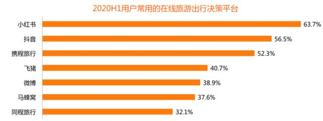 在小红书搜索框输入“旅行”后,相关笔记已经超过500万篇。2020年比达咨询发布《2020H1旅游市场分析报告》显示,小红书成为用户最常参考的旅行决策平台。用户选择的比例远超传统旅游攻略社区。