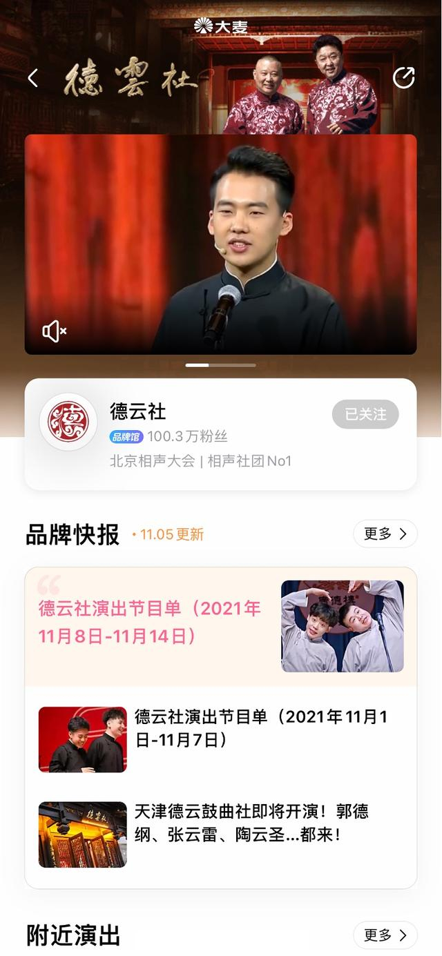 大麦“观演决策平台”建设正在高质量推进。11月22日,大麦平台德云社品牌馆关注用户数突破100万,至此,平台首个百万粉丝厂牌号正式诞生。