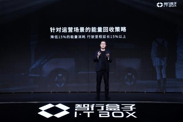 在此基础上,盒子汽车还采用专门的用电器策略优化技术,为整车能源消耗再降低5%,这意味着车辆能多行驶20km。比如,当车辆空载时,后排的大屏、自动售货机、灯光、空调可自动关闭;当用户上车后,车辆再有序地切换到适合的场景,以达到节能目的。