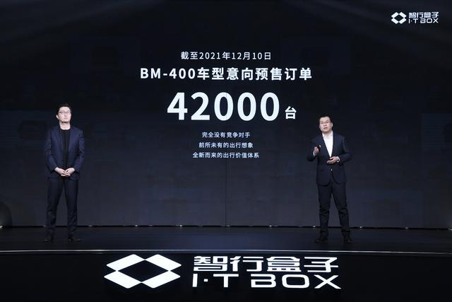12月15日,盒子汽车首秀暨品牌发布会在北京举行,聚焦B端赛道首发两款车型:BM-400主打专车、网约车、出租车市场,计划在2023年实现量产;BM-600针对中高端租赁市场,满足高品质出行需求,预计在2024年量产上市。目前,BM-400车型斩获42000台意向订单,未上市已成“爆款”。