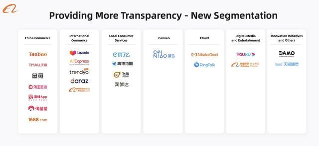 12月6日,阿里巴巴宣布升级多元化治理体系,更好地为多引擎驱动增长提供组织保障。本次投资者日,武卫表示,阿里巴巴将商业分部进一步拆分为“中国商业”、“跨境及全球商业”、“本地生活服务”、“菜鸟”四个部分,进一步提升公司透明度,反映业务最新进展。