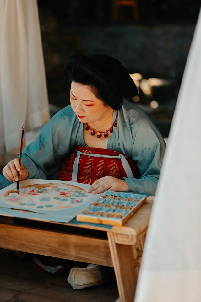 作为一家十余年汉服老店,簪花阁汉服工作室负责人冯乔与汉服的结缘,缘于大学毕业论文。主修服装专业的她,把主题定在汉服,彼时汉服还只是一项小众爱好,她记得在网上能搜集到的资料、图片都非常少。