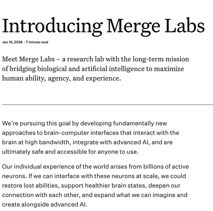Merge Labs表示,其长期使命是连接生物智能与人工智能,以最大化人类能力、能动性和体验。为实现这一目标,公司正在开发全新范式的脑机接口,这些接口能与大脑展开高带宽交互,并集成先进的人工智能,最终做到安全且人人可用。