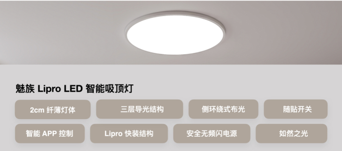 品玩5月31日讯,Lipro 智能家居今日正式发售了魅族 Lipro LED 智能吸顶灯,也将从系统级别为用户带来更全面的智能交互体验。魅族 Lipro LED 智能吸顶灯有着与市面上绝大多数吸顶灯不同的全新设计,将对一体式结构美学的极致追求展现得淋漓尽致。它不可思议的 2cm 超薄灯体,浓缩进了三层导光结构、环绕式侧布光以及客制化高性能电源,整体无螺孔也更直观地诠释了 MEIZU Design 简约美学。