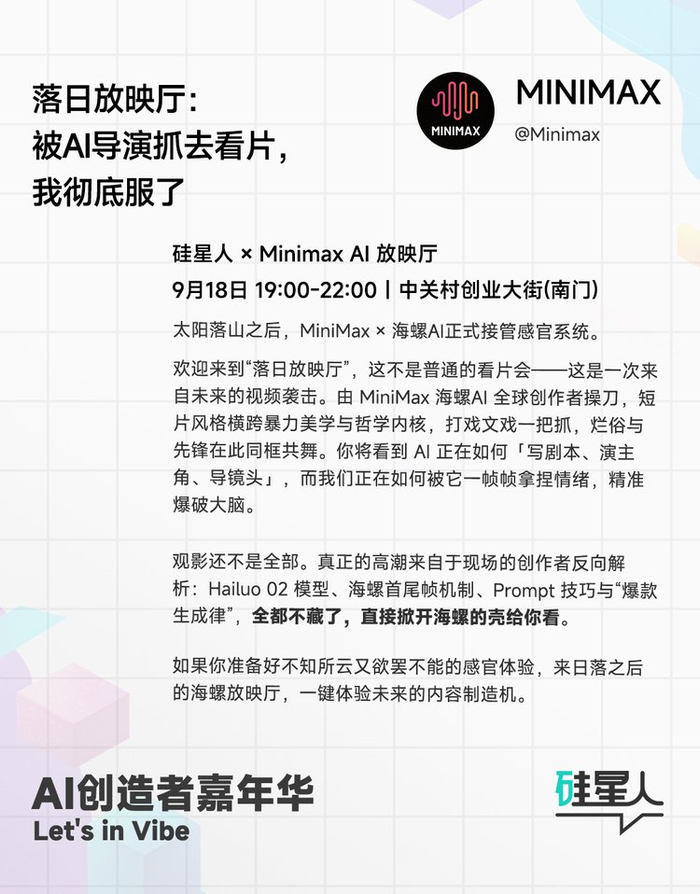 从白天的脑洞开放麦,到傍晚的日落辩论、海螺看片会、艺术After Party,一整天都像是掉进了一个技术与情绪共振的 AI 世界——而你随时可以加入其中,变成主角。