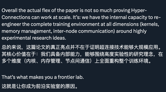 这才是前沿实验室(Frontier Lab)的标志——不仅要有算法灵感,还得有能力为了验证这个灵感,把整个训练环境的内核、内存管理、节点通信全部重写一遍。
