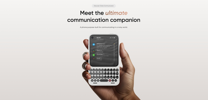 Clicks Technology,这家由科技圈知名 YouTuber “MrMobile” (Michael Fisher) 和 “CrackBerry Kevin” (Kevin Michaluk) 联合创立的公司,在靠着那款亮黄色的 iPhone 实体键盘壳(Clicks Creator Keyboard)赚足了眼球和话题度之后,终于不再满足于寄人篱下,刚刚发布了他们第一款独立手机——Clicks Communicator。