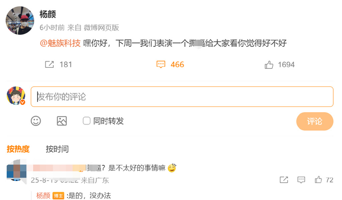 杨颜虽然没有公开和魅族闹矛盾,但选择在这个时间节点开撕魅族,应该早有规划。毕竟魅族22系列原定7月发布,最终延期到8月下旬,预计下周一开始有官方正式预热。在新机预热期间可以造成巨大影响,对魅族22系列和魅族科技都造成巨大打击,最有可能逼迫魅族做出最大让步。