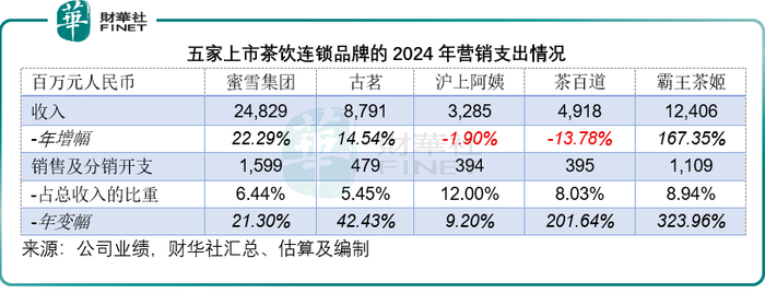 2024年,茶百道的销售及分销开支按年大增201.64%,至3.95亿元,占收入的比重达到8.03%。