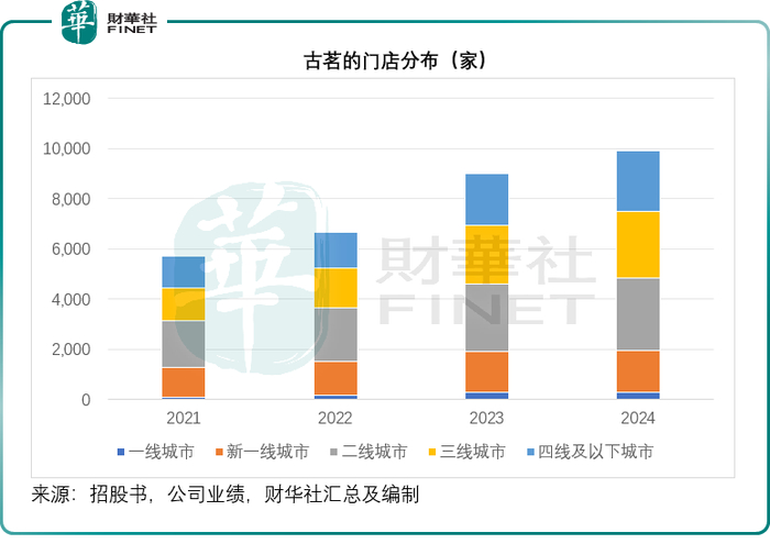 2024年在四线及以下城市的门店数由2023年的1,732家增至2,145家,占比从2023年的22.2%扩大至25.6%。