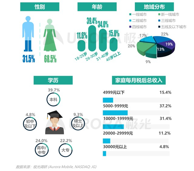 女性占比近七成,用户偏年轻化,受教育程度较高