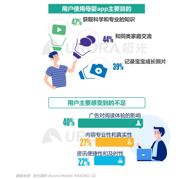 根据极光调研显示,用户认为母婴app的不足主要来自于广告和内容。减少广告植入、增强内容权威性和专业性、及时更新热门资讯将有助于优化用户体验