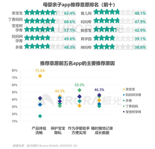 亲宝宝及丁香妈妈用户推荐率超六成