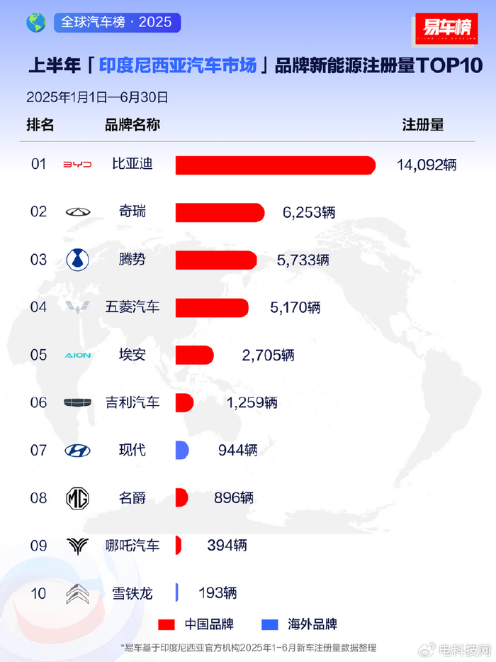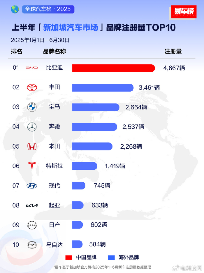 在亚太地区,比亚迪同样取得亮眼成绩。作为长期被日系品牌盘踞的市场,比亚迪在泰国已成功破冰,包揽新能源汽车和纯电动车双料销冠,纯电市场份额达到35%。在新加坡,比亚迪连续21个月获该国新能源乘用车销冠,并以19.5%的市场份额成为2025上半年乘用车销量冠军。在印尼市场,比亚迪销量达到第二名的2.3倍。中国香港市场上半年销量近5000台,同比增长22.5%,增速位居市场第一。