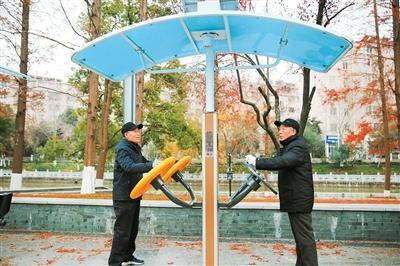 江苏省如皋市如城街道秀水社区,老人在使用智能体育设施健身。徐 慧摄(人民视觉)