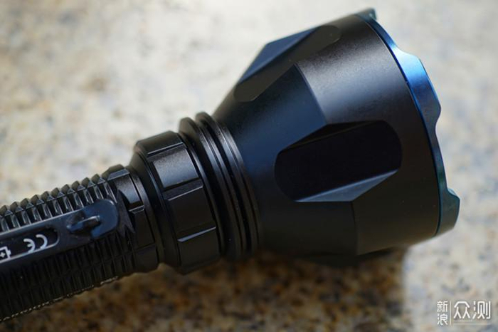 武士XT的筒头直径达到了58MM,是傲雷武士系列产品里头径最大的一个,硕大的筒头对LED灯珠的远射能力提供了很大的加成。筒头顶部装有电镀蓝色的金属攻击头,可以在紧急情况下做出砸击和撞击的动作。筒头外侧设计有粗大的散热槽,增加了筒头散热面积的同时,让武士XT看起来个性十足。
