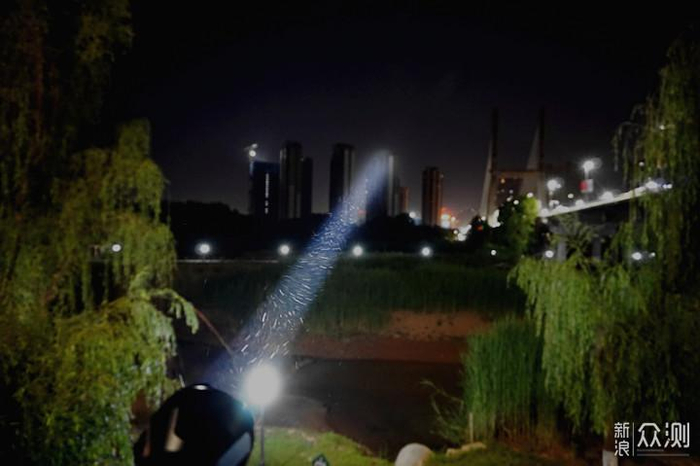 站在黄河北岸手持武士XT射向南岸的大楼,大楼主体上的光斑清晰可见,千米射程名不虚传。