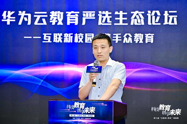 中关村互联网教育创新中心常务副总经理赵伟鹏在致辞中表示,随着以“互联网+教育”为代表的科技与教育的深度融合,科技产品在教育领域得到大量应用,线上线下融合模式深入实践,在普及教育场景智能化、推动校园建设信息化,促进育人方式多元化等方面发挥了重要作用。中关村互联网教育创新中心作为海淀区政府支持建设的服务教育创新创业的生态平台,和华为共同发起举办本次论坛旨在帮助在线教育企业寻找经营提质增效的增长途径。希望在华为云教育严选生态的模式下,更多的教育企业能够联合起来,发挥各自优势进行深度合作,共同推动教育高质量发展。(中关村互联网教育创新中心供图)