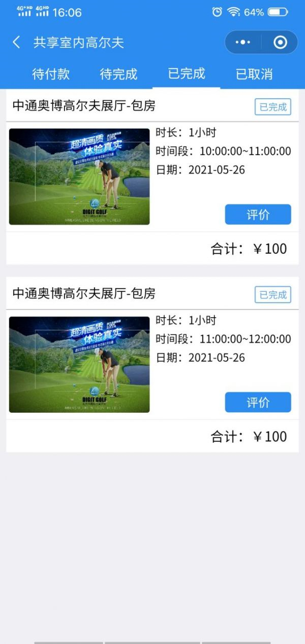 已预约订单结束后,用户可根据自己的实际情况及所在的无人值守高尔夫运动馆线上已预约的情况,进行续单。用户需要教练指导,也可以直接在小程序上选择教练并预约,方便了用户选择和了解也节约了双方的时间。