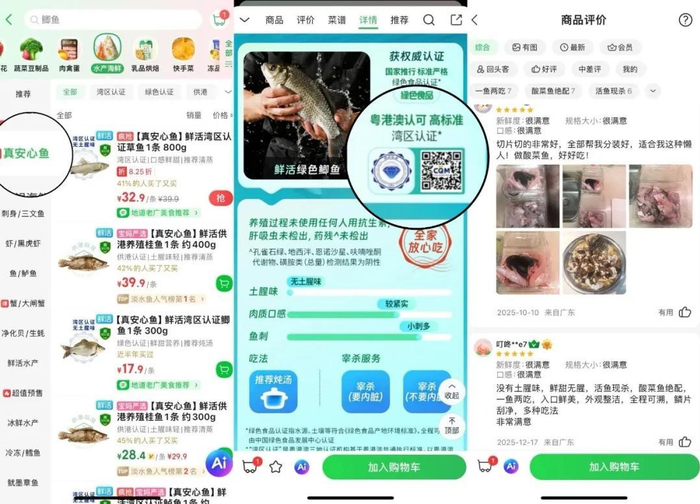 目前,针对供应链源头,叮咚买菜在华南地区已将“绿色认证”、“湾区认证”及“供港标准”纳入其“真安心鱼”溯源体系的准入条件。