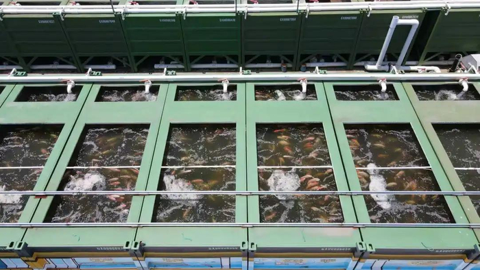 在符合“湾区认证”要求的观星农业养殖基地,养殖模式已从传统土塘,转向集装箱精养模式,实现高度可控性。这种模式的核心,是把水体环境拆解并重新设计:可精准管理养殖密度、溶氧、水温与水流,水体在独立的生态系统中反复循环净化,确保生长环境稳定,相当于为水产打造“豪华生态房”。对鱼来说,它不再生活在一个不可控的自然变量里,而是进入一个长期稳定、持续被校准的生长环境。