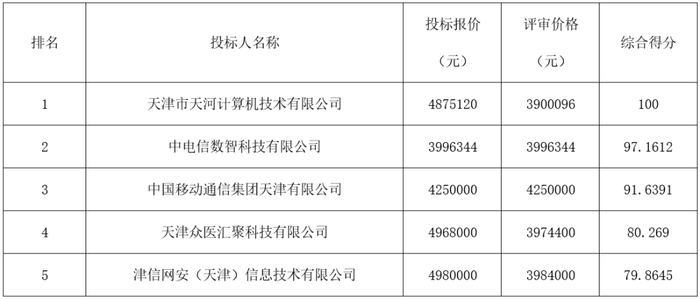2026 年 1 月 4 日发布中标结果,天津市天河计算机技术有限公司 487.512 万元(中)。