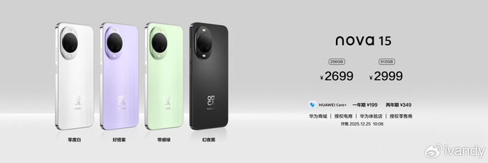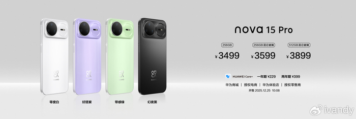 可以看到,华为nova 15系列的这次升级是全方位的,从外观设计到影像表现,从系统体验到性能续航,再到通信能力,每一个维度都精准贴合了年轻人的实际需求,没有明显的短板。更难得的是,在当前中端机普遍涨价的市场环境下,华为nova 15系列不仅没有涨价,还带来了全系大升级,2699元起的起售价就相当于是间接降价,加量不加价,诚意十足。
