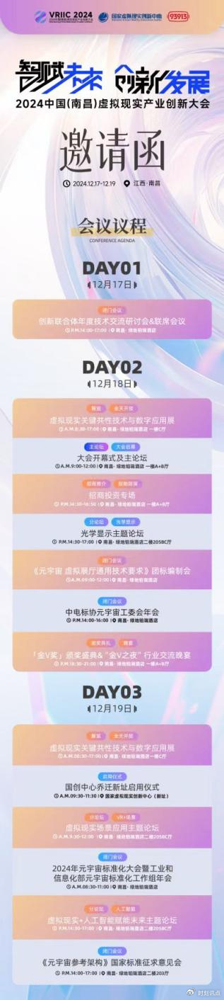 2024年12月17日-19日,由南昌市人民政府、江西省工业和信息化厅、江西省科学技术厅指导,国家虚拟现实创新中心、93913-元宇宙&AI信息与产业服务平台、虚拟现实制造业技术创新战略联盟(VRMTA)、江西省虚拟现实产业科技创新联合体并联合虚拟现实产业相关机构共同举办的2024中国(南昌)虚拟现实产业创新大会将于南昌盛大开幕。