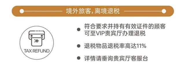 商场持续为符合条件的外国游客提供“离境退税”服务,最高退税率达11%,顾客可在VIP贵宾厅办理相关手续,让境外友人也能畅享便捷、优惠的购物体验。