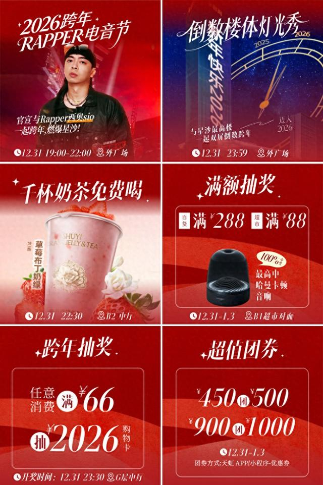 第三重:美食集市与会员专享。1月1日至3日,新年美食集市将提供千份美食供会员畅享。12月31日消费满额可参与抽取2026元购物卡,购物满额即送超市体验卡,回馈会员。