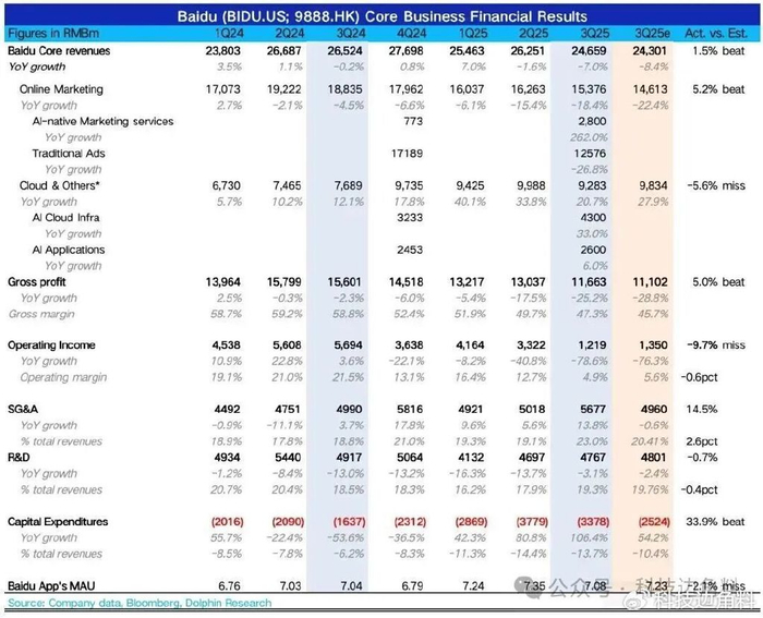 值得一提的是,百度Q3业绩整体符合市场预期,可能受宏观广告大盘和自身AI改造搜索影响,市场此前对百度Q3财报预期本就不高,尤其是每股收益1.56美元,高于分析师普遍预期0.91美元左右。