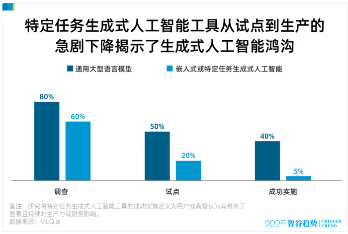 视线拉回当下,麻省理工学院(MIT)的报告也显示,在跟踪的300多个AI项目中,5%的企业已经抢先实现了财务回报。
