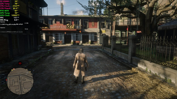 使用EX显卡扩展坞外接索泰RTX 4070之后,2K分辨率+影视级画质+DLSS均衡+帧生成+关闭光追,Benchmark测试的平均帧数72,在游戏里的实时帧数也能稳定在70以上,这才叫“流畅运行”嘛!