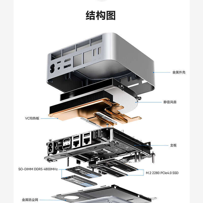 零刻GTi12 Ultrra的外壳采用一体化金属材质,外观简约、精致,和Mac mini有异曲同工之妙,稳稳拿捏了我这枚理工男的审美。并且,金属外壳不仅美观,还能有效改善迷你电脑散热不给力的通病。