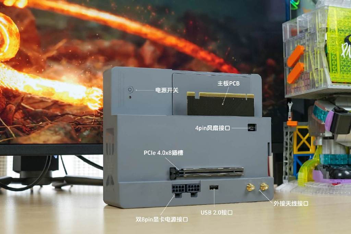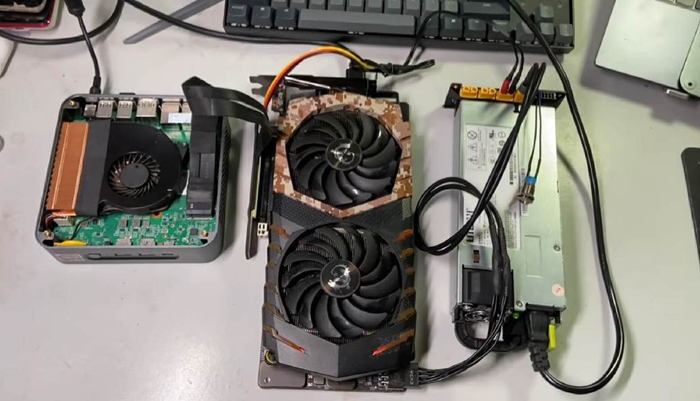 既然显卡是短板,那就给迷你电脑装上一张显卡吧!之前看过一篇关于给迷你电脑外接显卡的视频教程,又是跳线转接卡、又是改装外接电源,过程非常折腾。暂且不说这种改装的BUG和风险,单看这一堆裸漏在外的硬件和线材,也很难让人心情愉悦地玩耍。