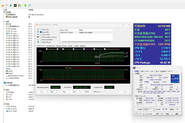 零刻GTi12 Ultrra搭载第12代英特尔酷睿i9-12900H处理器,14核心20线程,最大睿频频率5.00 GHz,缓存24 MB,基础功耗 45W。我使用3款测试工具对CPU进行了压力测试,结果如下,供大家参考。