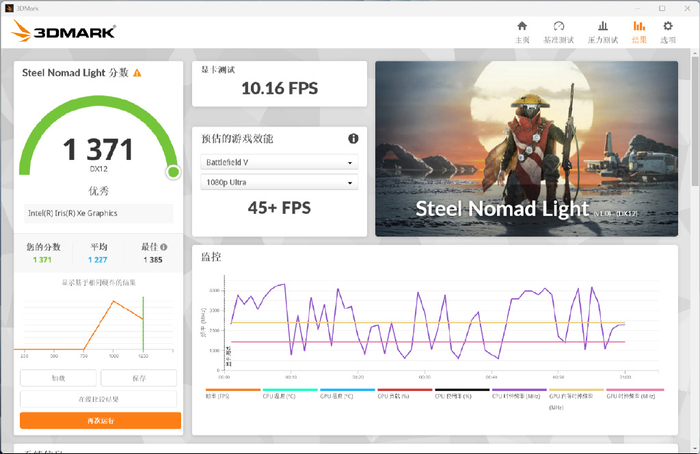 3DMark推出了一个跨平台、非光线追踪的基准测试项目:Steel Nomad Light,适用轻型电脑的显卡性能测试,零刻GTi12 Ultrra的集显测试结果1371分。