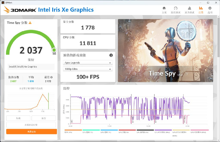- Intel Iris Xe Graphics显卡分数1778