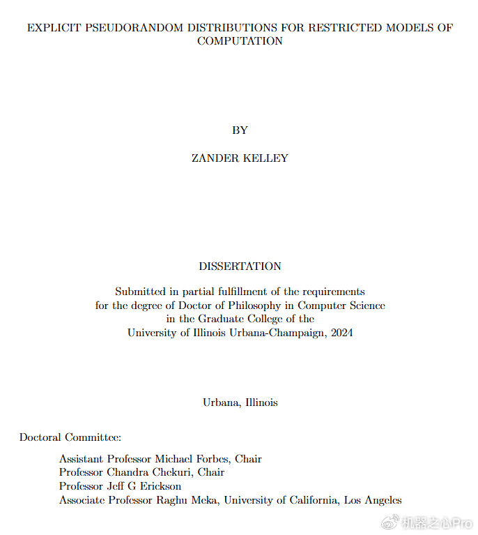 除了这篇论文,还有两篇论文获得了博士论文奖荣誉提名,其中一篇研究的问题是「利用伪随机分布揭示低复杂度计算模型的固有计算局限性」;另一篇则专注于「大型语言模型如何利用它们在训练时学习到的海量文本数据」。