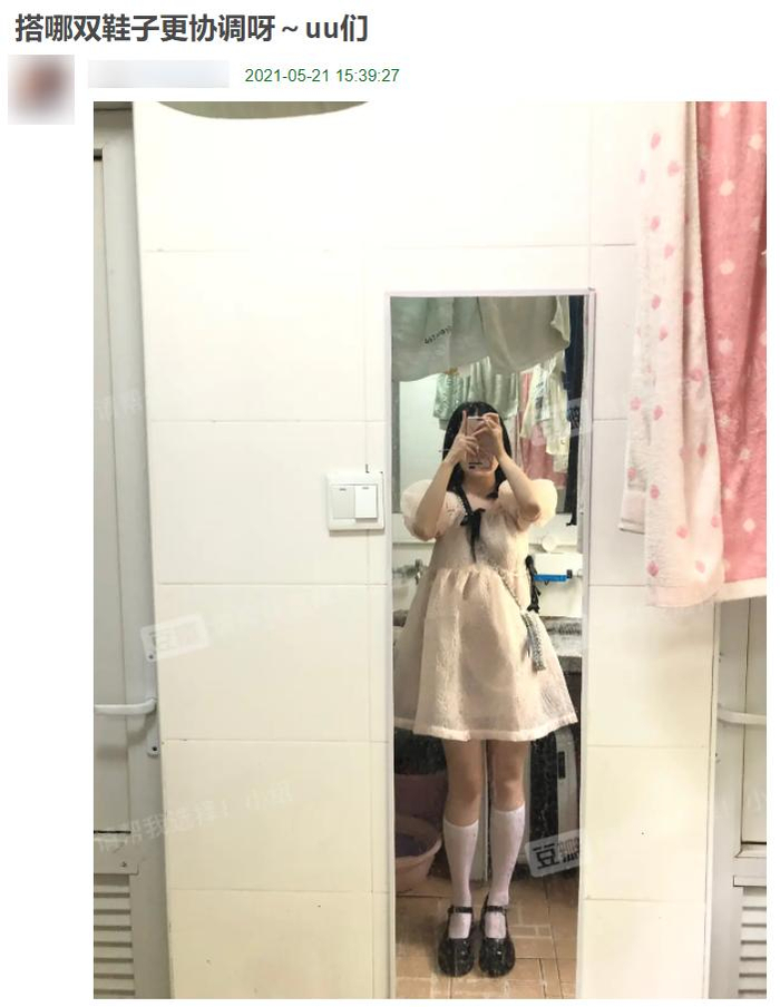 有一说一,小辣椒全程都被妹子可爱的装扮吸引了,哪有心思去帮妹子挑鞋子。。。还有的网友问的更加细致,连袜子要不要露出来都发个帖子问问。