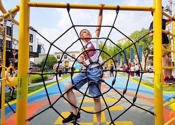 AI社区运动公园正式开放。 主办方供图在六一前夕(5月30日),嘉加德必易园和上海体育学院共同打造的德必AI社区运动公园正式开放,这也是国内首个基于园区数字化场景的AI社区运动公园,以“数字+运动”的方式,为6-9岁儿童提供体育服务,让家长也能成为优秀体育教练。