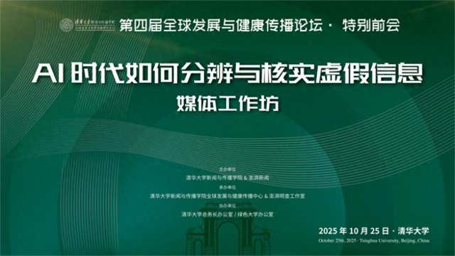 在此背景下,清华大学新闻与传播学院全球发展与健康传播中心与澎湃新闻·明查工作室联合举办此次“AI时代如何分辨与核实虚假信息”媒体工作坊,旨在汇聚国内外媒体工作者、国际组织代表、传播研究学者、社交及短视频平台专家,共同探讨在AI驱动的信息环境中,如何有效地进行事实核查(Fact-Checking)、虚假信息溯源(Source Tracing)、以及平台算法治理。希望此次工作坊不仅能分享现有的最佳实践和工具,更能激发创新的交流合作模式和技术方案,为构建一个更健康、更值得信赖的信息生态系统贡献力量。