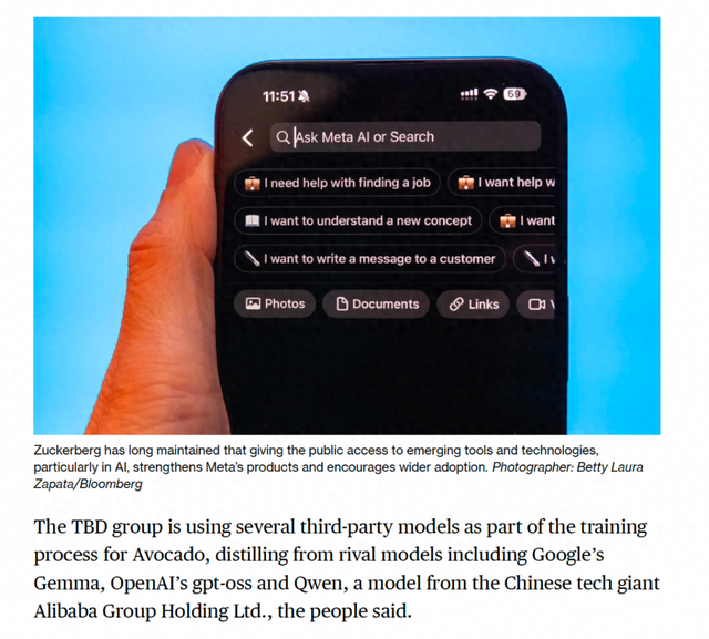 彭博社报道称,Meta新模型“牛油果”蒸馏自阿里千问